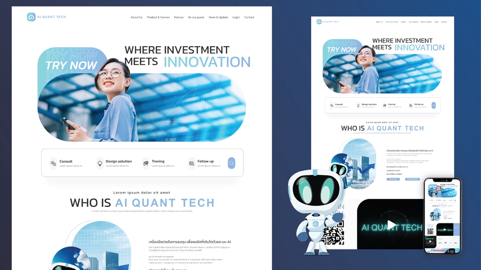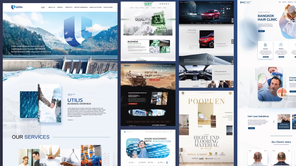 ออกแบบทั้งฟังก์ชั่น และความสวยงาม เพื่อให้เหมาะกับลักษณะเฉพาะของธุรกิจ มีการทำงานที่เป็นระบบ ไทม์ไลน์การทำงานและอัพเดทความคืบหน้าที่ชัดเจน รองรับ mobile responsive ตัวอย่างเว็บไซต์ที่เคยทำ utilis.co.th poopuen.com winbridge.co.th ratchasimarice.co.th ขั้นตอนการทำงาน - หารูปสไตงานดีไซน์ที่ลูกค้าชอบและเก็บข้อมูลรูปแบบและจุดเด่นของธุรกิจลูกค้k - ออกแบบ sketch หน้าแรกให้ลูกค้า - ขึ้นหน้าแรกบนเว็บไซน์จริง และส่งอัพเดทงานอีกครั้ง - ขึ้นประกอบและออกแบบหน้าอื่นๆ และส่งอัพเดทไปตามลำดับจบครบทุกหน้า - หากเว็บไซน์มีมากกว่า 1 ภาษา จะมีการแปลคอนเทนต์แล้วส่งให้ลูกค้า Confirm และจำทำภาษานั้นๆลงเว็บไซน์ - ส่งอัพเดทเพื่อให้มีการตรวจเช็คและ Confirm ครั้งสุดท้าย - ส่งมอบเว็บไซน์