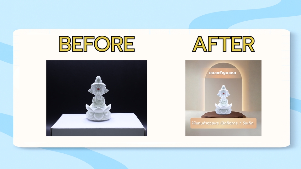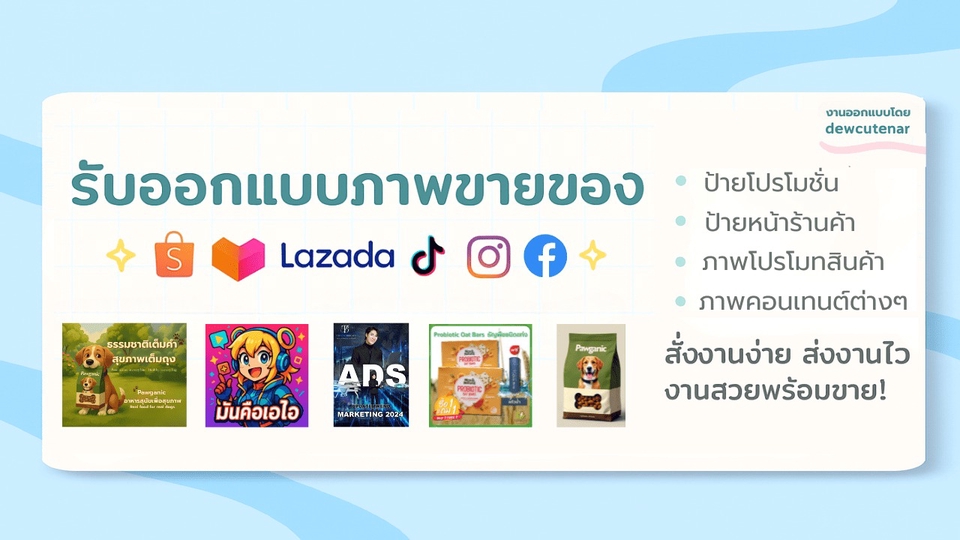 รับแก้ไขปัญหาภาพ ปรับแต่งภาพ ทำภาพโปรโมทสินค้า ลงในแพลตฟอร์มต่างๆ ไม่ว่าจะเป็น Shoppee Lazada รายละเอียดเพิ่มเติม ***ฟรีแลนด์ รับงานช่วง 09.00-18.00 น. ในกรณีลูกค้าต้องการงานเร่งด่วน หากจ้างเข้ามาเกินเวลา 18.00 น. คิดเพิ่ม 150 บาท จากราคาปกติทุกกรณี หากสงสัยตรงไหนสามารถทักเข้ามาพูดคุยสอบถามกันก่อนได้ครับ *** # # # # # # # # # หากคุณลูกค้าเพิ่งเคยจ้างเราครั้งแรก เพียงใส่โค้ดนี้ RFDTL5YO1 รับส่วนลดไปเลย 400 บาท เมื่อทำการจ้างเรียบร้อยแล้ว # # # # # # # # # ขั้นตอนการทำงาน 1. คุยรายละเอียดเกี่ยวกับงานที่ลูกค้าต้องการให้แก้ไข หรือ เพิ่มเติม 2. ลูกค้าส่งไฟล์ผ่านทาง Email หรือ ช่องทางที่ลูกค้าสะดวก (ในกรณีที่ลูกค้ามี concept รูปภาพ ข้อความ หรือ โลโก้ ที่ต้องการจะให้ใส่ในรูปอยู่แล้ว) 3. เริ่มทำงานตามที่บรีฟ ให้เสร็จสิ้นภายในระยะเวลาที่ตกลงกับลูกค้า 4. การแก้ไขงานจะแก้ไขให้ฟรี 2 ครั้ง ต่อ 1 งานและจะต้องไม่เกิน 20 % หรือ แก้ทั้งหมด 5. เมื่องานเสร็จสมบูรณ์แล้ว จะส่งงานผ่านทาง Email หรือช่องทางที่ลูกค้าสะดวก 6. กดเรทติ้ง รีวิวให้ทางเรา