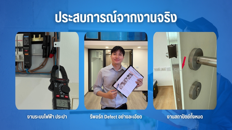 บริการตรวจรับคอนโดก่อนโอน – โดยผู้เชี่ยวชาญด้านงานก่อสร้าง ตรวจครบจบทุกจุด ทั้งงานโครงสร้าง ไฟฟ้า ระบบน้ำ เฟอร์นิเจอร์ built-in และงานตกแต่ง เพื่อให้คุณมั่นใจก่อนรับมอบห้อง พร้อมรายงานภาพถ่าย + แนวทางแก้ไขให้เสร็จสรรพ ✔️ เช็คละเอียด 8 หมวดมาตรฐาน ✔️ รายงานปัญหา พร้อมแนวทางแก้ไข ✔️ มีเครื่องมือทดสอบไฟ-น้ำครบ ✔️ รับงานเอง ไม่ส่งต่อ
