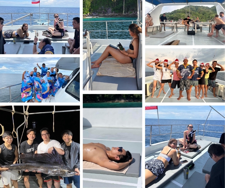 ⛴️ Highlight Destinations 1. SIMILAN ISLAND 2. KOH BON 3. RICHELIEU ROCK 4. KOH TACHAI 5. KOH SURIN 6. T13 WRECK 🚢Boat Accommodation & Facilities - Twin. 7 room ensuite - Double bed 2 room ensuite - king bed 1 room ensuite - Four bunk bed 1 room (4 pax ) - Facilities hot & cold shower toilet - shower clean and bath set daily in each shower toilet PACKAGE INCLUDED: - Professional Dive Guide - Diving Essentials : Tanks (single tank/dive), weights and weight belt. - Meals & Refreshments: Full board meals, snacks, and fresh fruit (buffet style) - Beverages: Drinking water, tea, coffee, soft drink, and juices - Onboard Amenities: Towels, hair dryer, shampoo, soap, pillow, general medicine and seasickness tablets. - Transfers: Complimentary round-trip transfer from Phuket International airport PACKAGE EXCLUDED : - National Park Fee: THB 2,200 (per person) - Full Scuba Equipment rental (Fins, mask, Wetsuit, BCS, Regulator): THB 800 (per diving day) - Dive computer rental: THB 500 (per diving day) - Diving Torch: THB 300 (per diving day) (*Compulsory for Night Dive*) - Nitrox: THB 3,500 (14 tanks) / per person - Alcoholic beverages ขั้นตอนการทำงาน 1. คุยรายละเอียด วันและเวลาเดินทาง 2. สร้างใบเสนอราคา 3. ลูกค้าชำระเงิน 4. เริ่มงาน