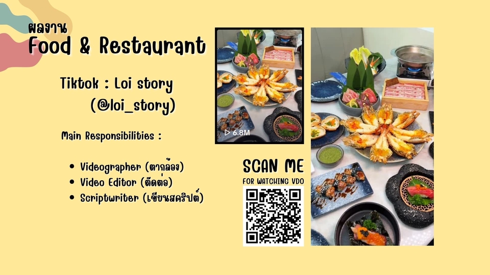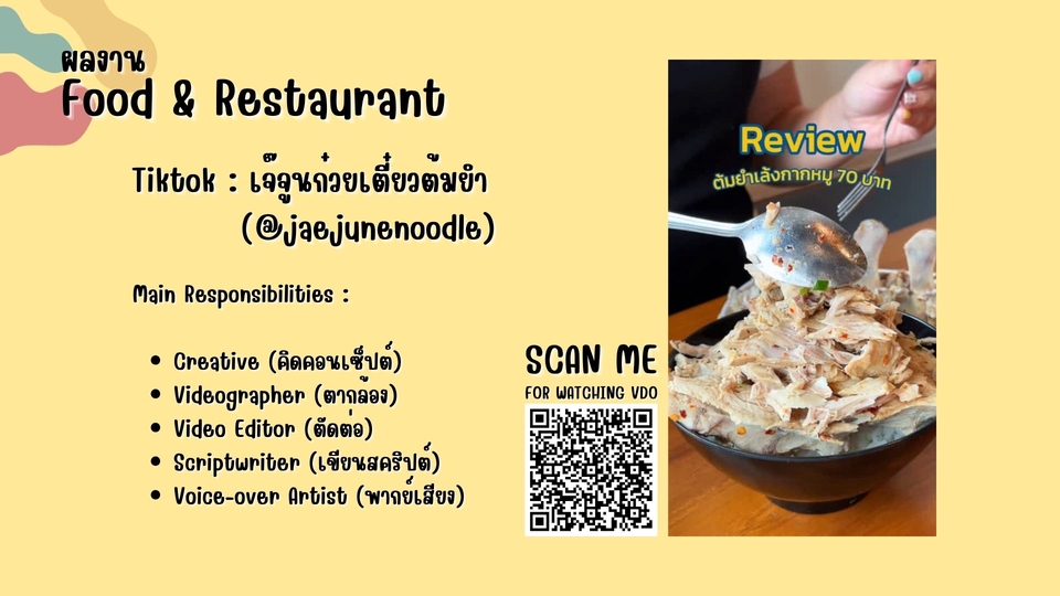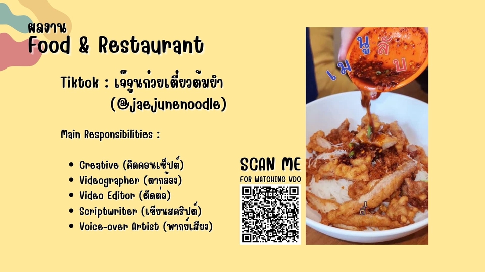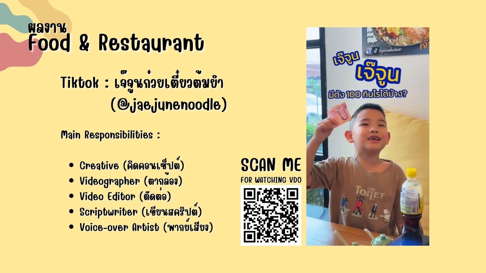 รับตัดต่อ และ รีวิว ไม่ว่าจะเป็นแนว Vlog, ท่องเที่ยว, ร้านอาหาร, คาเฟ่ และ รีวิวสินค้า **ทั้งแนวนอน และ แนวตั้ง** - ใส่ sound ใส่ซับ ตบมุขโบ๊ะบ๊ะ, text เน้นคำ, ใส่เพลงให้ - ตัดได้เกือบทุกสาย แต่ไม่ถนัดสายเกมเมอมร์นะคะ - แก้งานฟรี 2 ครั้ง ครั้งต่อไปคิดละ 300 ตัดด้วยโปรแกรม Wondershare Filmora 11 และ Capcut ขั้นตอนการทำงาน 1. คุยรายละเอียดคลิป ส่ง ref. ที่ต้องการเพื่อประเมินงาน 2. กำหนดระยะเวลา และตกลงรายคา 3. ส่ง foodtage 4. ส่งตัวอย่าง Highlight ให้ดู 5. ส่งงานให้ตรวจครั้งที่ 1 เพื่อนแก้ไขครั้งสุดท้าย 6. ส่งไฟล์สำเร็จถ้าไม่มีการแก้ไข