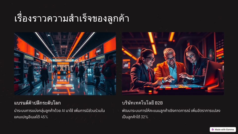 ฿65,000ลูกค้าจะสามารถลดเวลาทำงานด้วยมือลงได้ถึง 40% เพิ่มประสิทธิภาพแคมเปญการตลาดได้ 25-35% และสร้างการมีส่วนร่วมกับลูกค้าได้มากขึ้นถึง 50% พร้อมทั้งได้รับการวางรากฐานด้าน AI ที่แข็งแกร่งสำหรับการพัฒนาต่อยอดในอนาคต