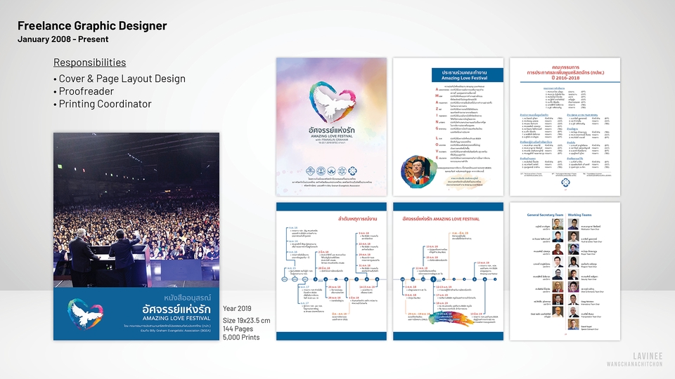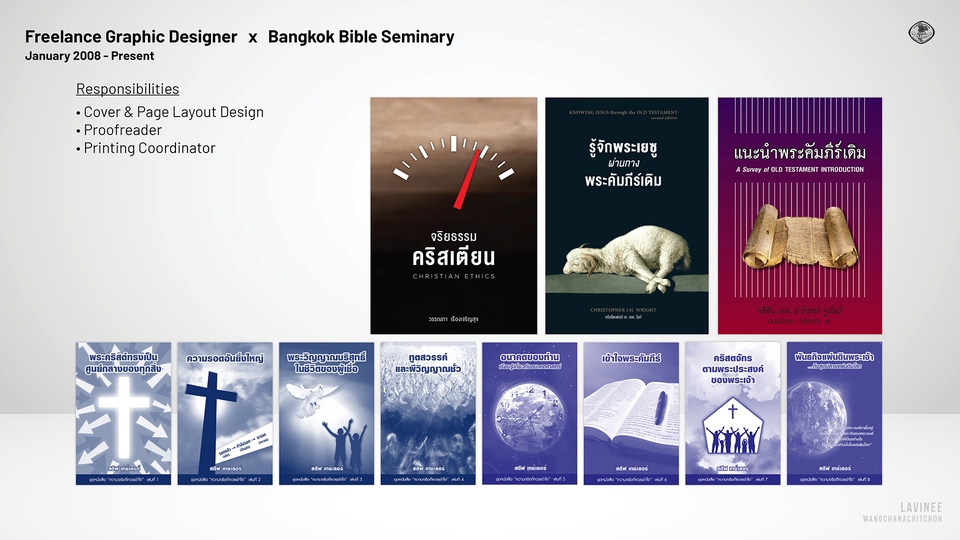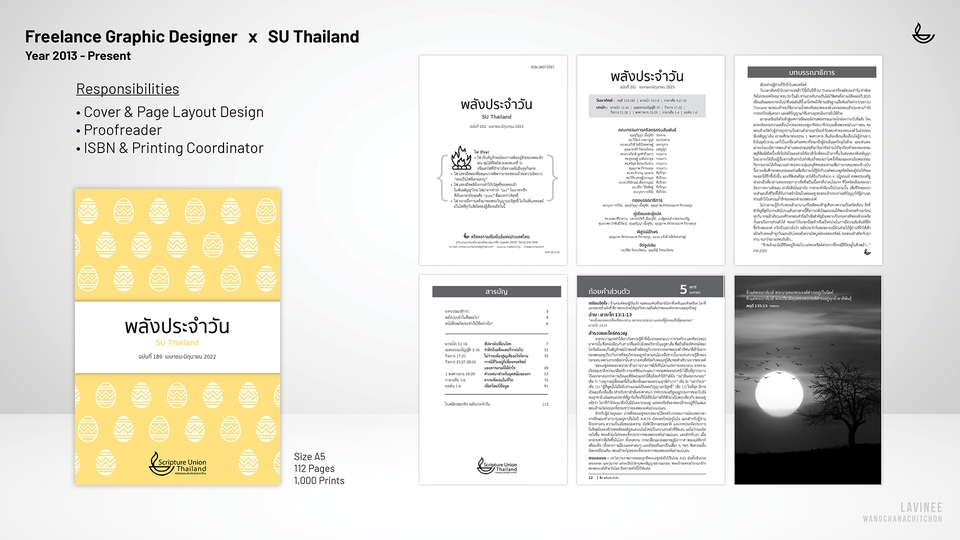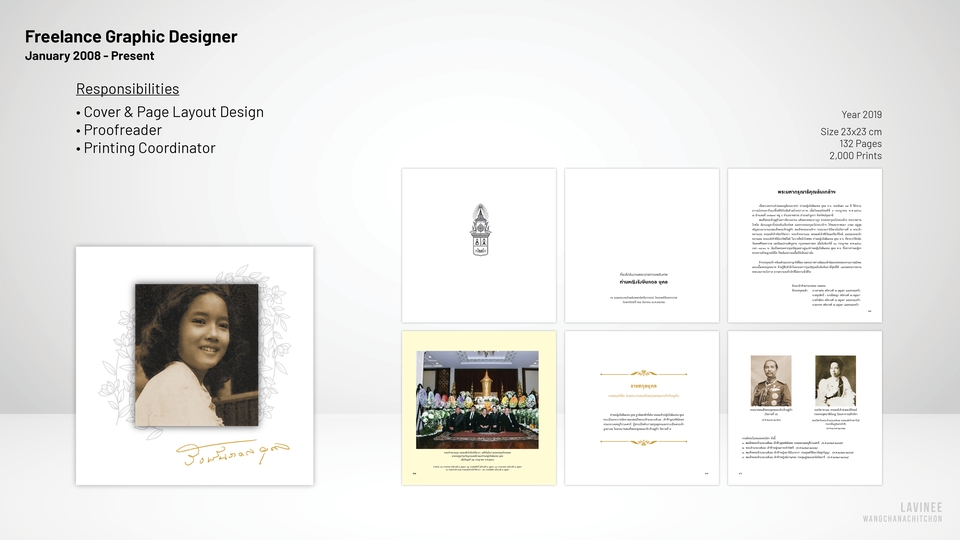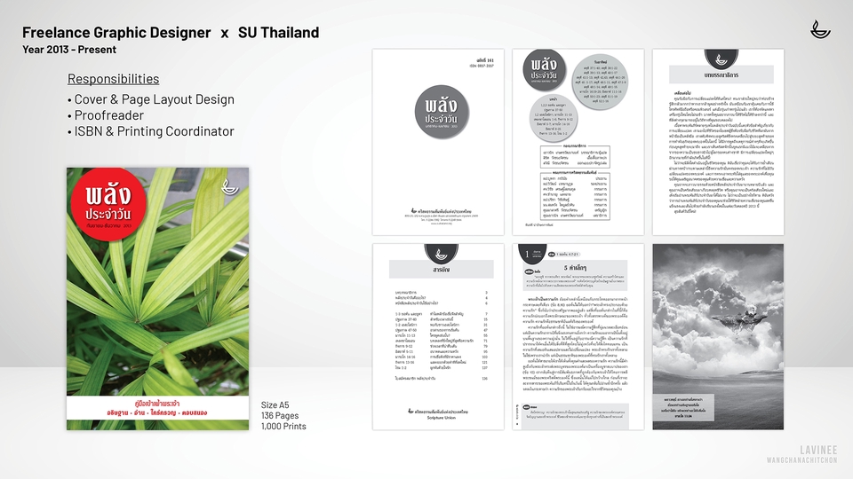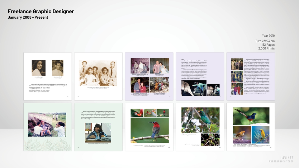 Graphic Designer ก็เป็น | Account Administrator ก็เคยทำ | Driver ก็ยังทำอยู่ แต่งานที่ชอบที่สุดคือ งานจัดอาร์ตเวิร์ค รับจัดวางเลย์เอาท์ งานตัวหนังสือเยอะๆ พร้อมพิสูจน์อักษร (แถมให้ด้วย) ประสบการณ์ 15+ ปี ทำหนังสือมาแล้วกว่า 150+ เล่ม ดูพอร์ตได้ที่นี่ https://lavinee.my.canva.site/dagpsmlysfa
