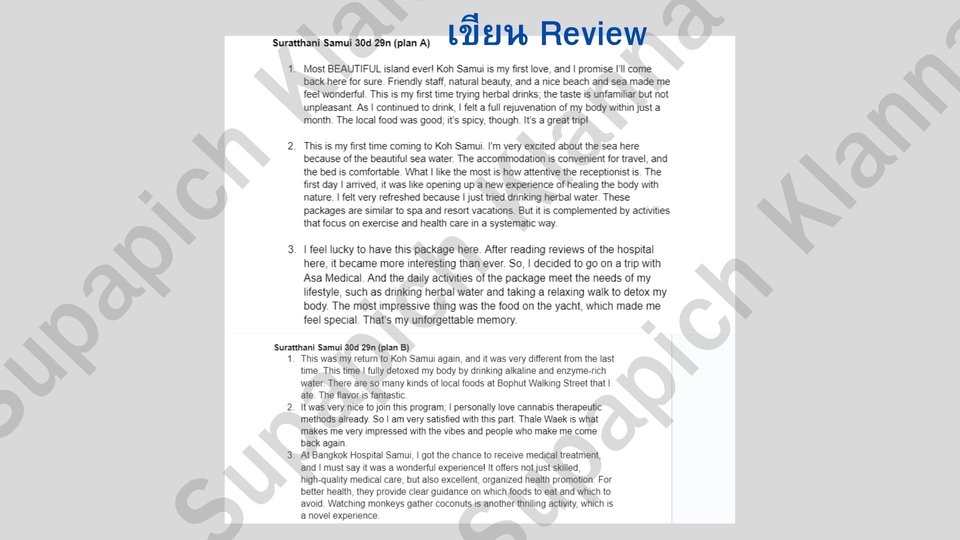 เขียนรีวิวที่พัก/แพ็คเกจท่องเที่ยว/อาหาร/ร้านอาหาร