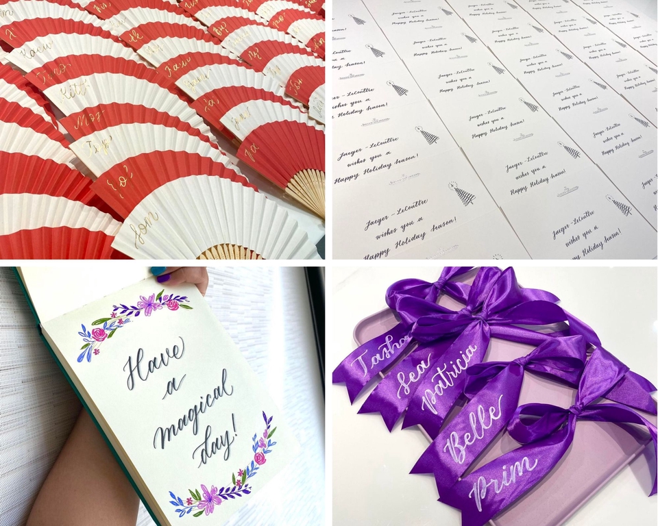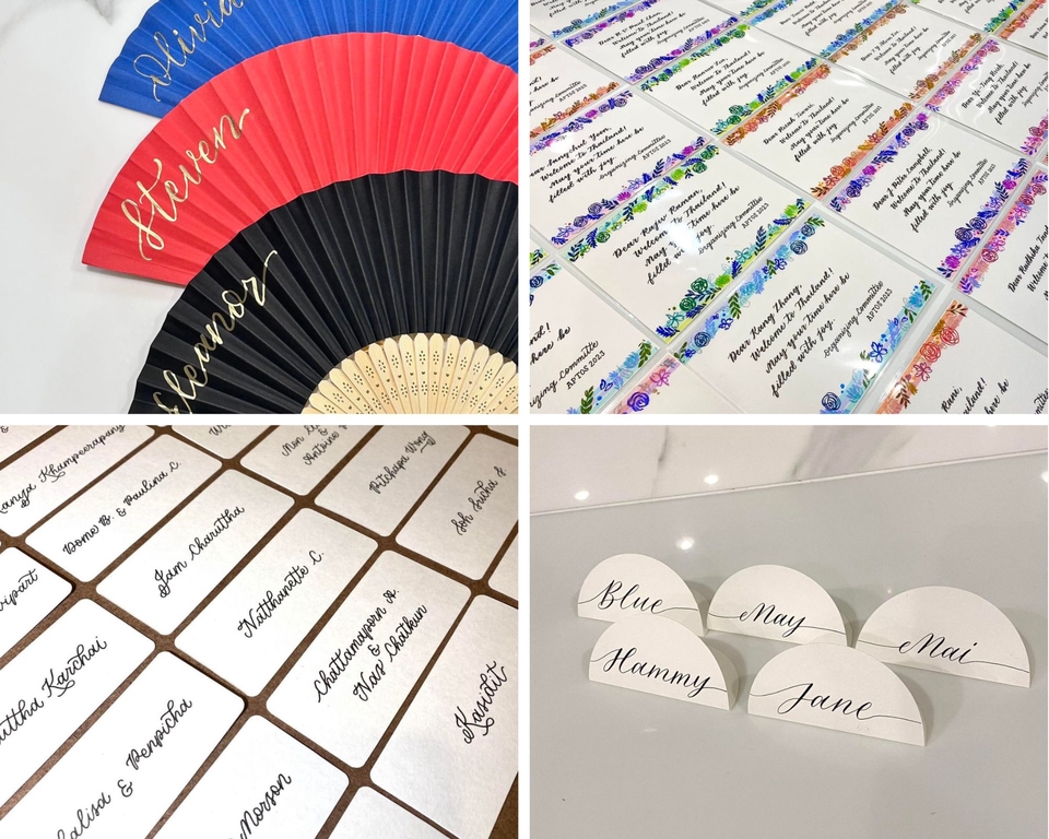 Calligraphy and hand-engraving service in English, Thai, and Chinese o In-studio o On-site/ Live events/ In-store Calligraphy using dip pens/ brush pens/ watercolor/ and markers. Engraving on glass/ mirror/ metal/ acrylic/ plastic ขั้นตอนการทำงาน 1. คุยงานเพื่อตกลงแบบและความต้องการของลูกค้า อุปกรณ์ที่ต้องการให้ใช้ 2. ตกลงราคาและระยะเวลาที่ต้องใช้ 3. เริ่มงานหลังจากลูกค้าชำระเงินแล้ว 4. เริ่มทำแบบร่างหรือตัวอย่างส่งให้ลูกค้าดูเพื่อยืนยันความต้องการ 5. รับฟัง comment จากลูกค้า และปรับแก้ชิ้นงาน หรือทำชิ้นงานใหม่ให้ตรงความต้องการ 6. เมื่อลูกค้าพอใจแล้ว ถ่ายรูปส่งงานให้ในระบบ fastwork 7. ส่งชิ้นงานจริงให้ลูกค้าทางไปรษณีย์ ขนส่งเอกชน หรือนัดรับ แล้วแต่ตกลง
