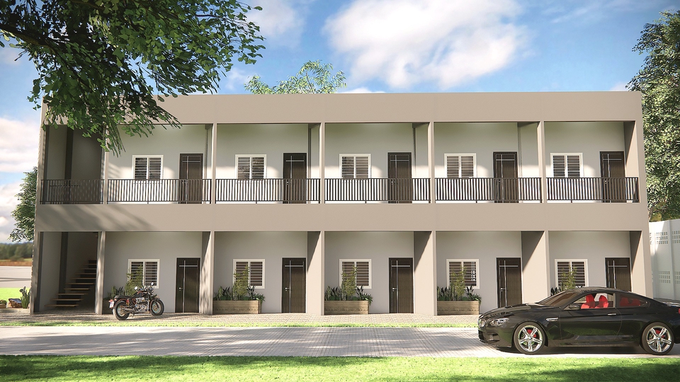 ออกแบบอาคารหอพัก 2 ชั้น 10 ห้อง สำหรับปล่อยให้เช่า ภายในมีห้องน้ำในตัว โดยการออกแบบภายนอกอาคารหลังนี้ Concept : Back to Basic โดยมีแนวคิดการออกแบบเรื่องพื้นฐานสำคัญในการใช้ชีวิตเหมือนย้อนกลับมาสู่จุดเริ่มต้นของชีวิตในแต่ละวันเพื่อเริ่มวันใหม่ โดยมีการออกแบบภายในเพื่อเป็นตัวอย่างเสนอผู้ว่าจ้างด้วย ขั้นตอนการทำงาน 1. ถามข้อมูลรับบรีฟจากผู้ว่าจ้าง ตรวจพื้นที่หน้างานก่อนทำการออกแบบ 2. เริ่มทำการออกแบบเพื่อเสนอแบบให้กับผู้ว่าจ้าง 3. ปรับแก้ไขแบบตามที่ได้รับการปรับแก้ไข 4. ส่งเสนอแบบหลังจากปรับแก้เสร็จ