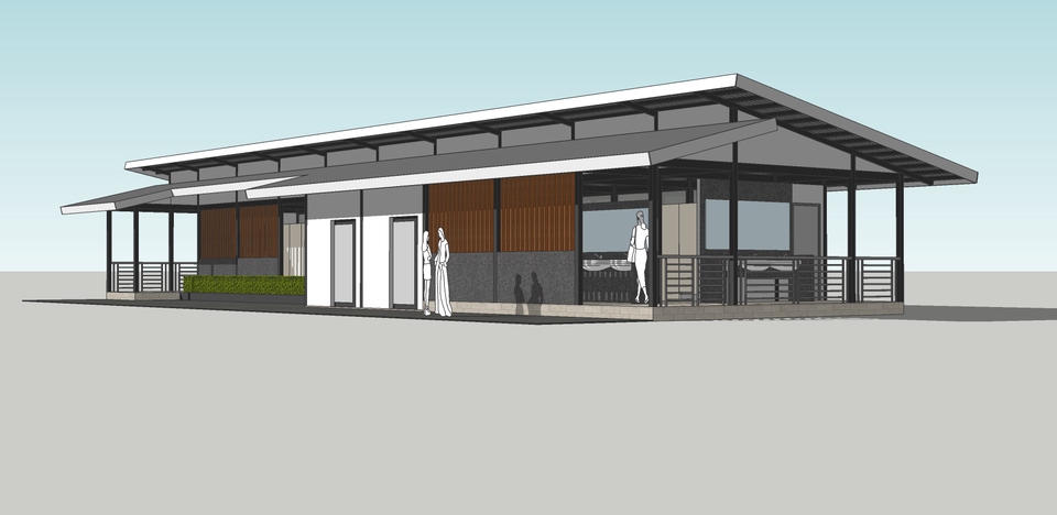 : ออกแบบบ้านชั้นเดียว พร้อมขึ้นโมเดล 3D ด้วย SketchUp : ขึ้นโมเดล 3 มิติ (3D) ด้วย SketchUp สำหรับงานสถาปัตย์ : ออกแบบอาคารพาณิชย์ 3 ชั้นครึ่ง สไตล์โมเดิร์น + โมเดล SketchUp : ขึ้นโมเดลบ้านสองชั้น / ทาวน์โฮม ด้วย SketchUp สำหรับงานเสนอแบบ : รับออกแบบโฮมออฟฟิศ/คาเฟ่ สไตล์มินิมอล พร้อมโมเดล 3D SketchUp : ออกแบบ+โมเดลบ้านพักตากอากาศ พร้อมจัดองค์ประกอบภายนอก : โมเดล 3D แบบบ้านตามงบประมาณจริง พร้อมแนวคิดสถาปัตยกรรม : ออกแบบบ้าน+โมเดล SketchUp สำหรับงานรีโนเวทหรือต่อเติม ขั้นตอนการทำงาน 1. รับโจทย์จากลูกค้า เช่น พื้นที่ใช้สอย, งบประมาณ, สไตล์ที่ต้องการ, รูปแบบอาคาร ลูกค้าอาจแนบตัวอย่างแบบ, รูปบ้านที่ชอบ, ผังที่ดิน หรือภาพสเก็ตช์คร่าวๆมาให้ 2. แจ้งราคาตามขนาดพื้นที่หรือความซับซ้อนของงาน ตกลงรอบการแก้ไข และกำหนดวันส่งงาน 3. เริ่มร่างแบบแปลนเบื้องต้น ทำแปลนพื้น, รูปด้าน, รูปตัด เบื้องต้น (ไฟล์ภาพ JPG/PDF) ส่งให้ลูกค้าดูเพื่อนำไปปรับแก้ 4. ขึ้นโมเดล 3D ด้วย SketchUp จะเริ่มขึ้นโมเดล 3 มิติจากแปลน ลูกค้าสามารถดูภาพมุมต่างๆ เพื่อให้เห็นรูปร่างอาคารโดยรวม 5. ภาพนำเสนอ ภาพจากมุมต่างๆปรับแสง เงา บรรยากาศเบื้องต้นให้สมจริง เลือกมุมเรนเดอร์ภาพสมจริง 1 มุม 6. ส่งงานและปรับแก้ตามรอบ ส่งภาพทั้งหมดให้ลูกค้าตรวจสอบ (แปลน + โมเดล + ภาพเรนเดอร์) ลูกค้าสามารถขอปรับแก้ตามรอบที่กำหนดในแพ็กเกจ 7. ส่งไฟล์งานขั้นสุดท้าย ไฟล์งาน(Auto cad), ส่งไฟล์ภาพ(JPG/PDF), โมเดล SketchUp(.skp) และแบบร่างทั้งหมด เพื่อให้ลูกค้าไปต่อยอดทำแบบก่อสร้างหรือขออนุญาตได้
