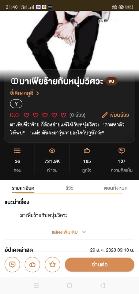 รับเขียนนิยายตามหัวข้อที่ลูกค้าต้องการ ปัจจุบันเขียนนิยายวายลงเว็บไซต์ของธัญวลัย นิยายได้ติดยอดฮิตของเว็บไซต์มาแล้ว2-3เรื่อง มีความรับผิดชอบต่องาน ไม่เทงานแน่นอน ขั้นตอนการทำงาน 1. ลูกค้าแจ้งเนื้อหา และหัวข้อที่ต้องการ 2. ส่งตัวอย่างหรือโครงร่างให้กับลูกค้าพิจารณา 3. คิดค่ามัดจำ 4. เริ่มเขียนงานตามระยะเวลาที่ลูกค้าต้องการหรือกำหนด 5. ส่งงาน 6. รับแก้ไข 7. ส่งงานที่แก้ไขแล้วให้กับลูกค้า 8. จบงานและจ่ายเงินในส่วนที่เหลือ