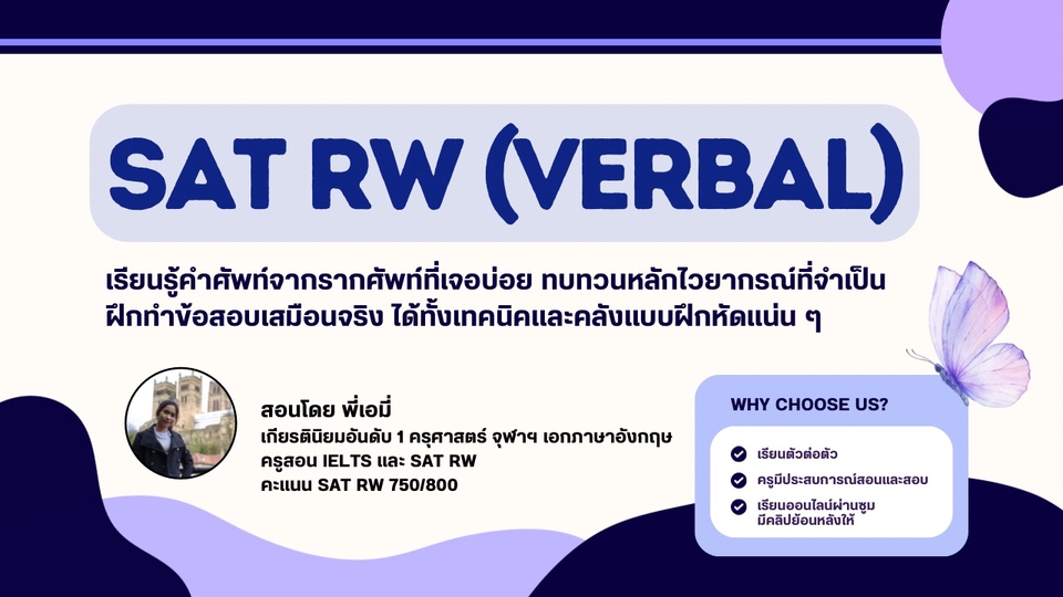 Private English Tutor and Translator IELTS 8.5 Writing 8.0 TOEIC 990 CU-TEP 111 ครุศาสตร์บัณฑิต เกียรตินิยมอันดับ 1 จุฬาลงกรณ์มหาวิทยาลัย หลักสูตร 5 ปี มีประสบการณ์สอน มีใบประกอบวิชาชีพครู