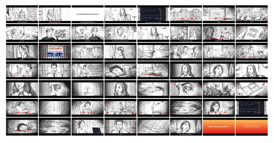 วาด Storyboard สำหรับงานโฆษณา/Music video/หนังสั้น/motion/animation ภาพสเก็ตช์ ขาวดำ สี