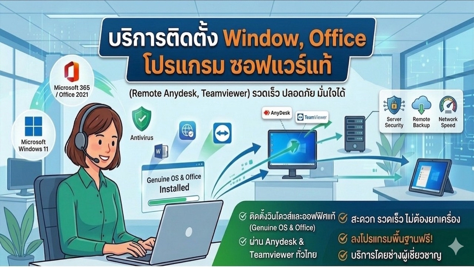 บริการดูแล/ติดตั้ง Window, Office, ซอฟต์แวร์ โปรแกรมเเท้ แก้ไวรัส แก้ไขปัญหา (Remote Support)