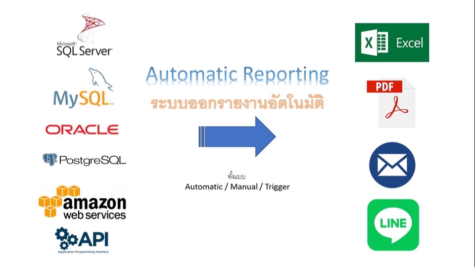 ระบบรายงานอัตโนมัติเป็น Email/Excel/PDF/LINE ดึงข้อมูลจากฐานข้อมูลต่างๆ