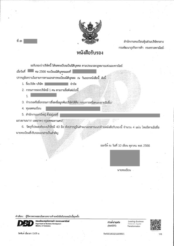 ฿6,5001. ตรวจสอบและจองชื่อนิติบุคคล 2. เตรียมและจัดทำเอกสารจดทะเบียน 3. ยื่นคำขอผ่าน DBD e-Registration 4. แนะนำขั้นตอนหลังการจดทะเบียน 5. ไฟล์เอกสารทั้งหมดในรูปแบบ PDF