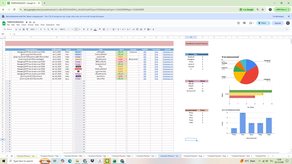 Excel / Google Sheet : คีย์ข้อมูล, ทำตารางสรุป, ผูกสูตรคำนวน , ออกแบบ Dashboard ตามที่ลูกค้าต้องการ