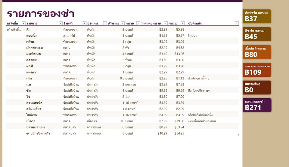 Excel / Google Sheet : คีย์ข้อมูลและสรุปตารางทั่วไป