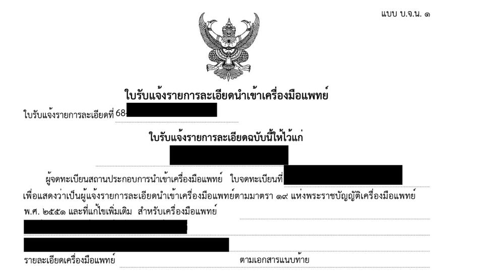 บริการจดทะเบียนผลิตภัณฑ์กับ อย. โดยผู้เชี่ยวชาญ **บริการที่เรารับทำ:** - จดทะเบียนผลิตภัณฑ์ทางการแพทย์ทุกประเภทกับสำนักงานคณะกรรมการอาหารและยา (อย.) - จดทะเบียนเครื่องสำอางค์ครบวงจร ตั้งแต่สูตร เอกสาร จนถึงบรรจุภัณฑ์ - จดทะเบียนคอนแทคเลนส์และอุปกรณ์เสริมความงามทุกชนิด - ให้คำปรึกษาด้านกฎระเบียบและมาตรฐานผลิตภัณฑ์ - วางแผนการจดทะเบียนสำหรับผลิตภัณฑ์นำเข้าจากต่างประเทศ **จุดเด่นของบริการเรา:** - ประสบการณ์มากกว่า 15 ปี ในการจดทะเบียนผลิตภัณฑ์กับ อย. - ให้คำปรึกษาโดยแพทย์ผู้เชี่ยวชาญเฉพาะทางโดยตรง ไม่ผ่านคนกลาง - เข้าใจลึกซึ้งในข้อกำหนดและมาตรฐานของ อย. อย่างครบถ้วน - มีความเชี่ยวชาญในการจัดเตรียมเอกสารให้ถูกต้องตามหลักเกณฑ์ล่าสุด - ดำเนินการได้รวดเร็ว ลดระยะเวลารอคอยและโอกาสในการถูกปฏิเสธ - ติดตามความคืบหน้าอย่างใกล้ชิดและแก้ไขปัญหาได้ทันที - รับประกันผลงาน หากไม่ผ่านการอนุมัติ เรายินดีดำเนินการแก้ไขจนกว่าจะสำเร็จ ด้วยประสบการณ์อันยาวนานและทีมแพทย์ผู้เชี่ยวชาญของเรา เราพร้อมช่วยให้การจดทะเบียนผลิตภัณฑ์ของคุณเป็นไปอย่างราบรื่น รวดเร็ว และมีประสิทธิภาพ ไม่ว่าจะเป็นผลิตภัณฑ์ใหม่หรือการต่ออายุทะเบียน เราพร้อมดูแลทุกขั้นตอนอย่างมืออาชีพ ขั้นตอนการทำงาน 1. ขั้นตอนการทำงาน: บริการจดทะเบียน อย. แบบพรีเมียม ขั้นตอนที่ 1: การปรึกษาเบื้องต้น นัดหมายประชุมกับทีมแพทย์ผู้เชี่ยวชาญของเรา วิเคราะห์รายละเอียดผลิตภัณฑ์และความต้องการของบริษัท ให้คำแนะนำเกี่ยวกับประเภทการจดทะเบียนที่เหมาะสม กำหนดแผนงานและระยะเวลาโดยประมาณ 2. ขั้นตอนที่ 2: การเตรียมเอกสาร รวบรวมข้อมูลและเอกสารที่จำเป็นทั้งหมด จัดเตรียมแบบฟอร์มตามข้อกำหนดของ อย. ล่าสุด ตรวจสอบความถูกต้องของข้อมูลทางเทคนิคโดยแพทย์ผู้เชี่ยวชาญ จัดทำเอกสารสนับสนุนด้านคุณภาพและความปลอดภัย 3. ขั้นตอนที่ 3: การยื่นเอกสาร ตรวจสอบความครบถ้วนของเอกสารทั้งหมดก่อนยื่น นัดหมายกับหน่วยงาน อย. เพื่อยื่นเอกสาร เดินทางไปยื่นเอกสารที่สำนักงาน อย. แทนคุณ ดำเนินการชำระค่าธรรมเนียมการจดทะเบียน 4. ขั้นตอนที่ 4: การติดตามและแก้ไข ติดตามความคืบหน้าของการพิจารณาอย่างต่อเนื่อง ประสานงานกับเจ้าหน้าที่ อย. เมื่อมีข้อสงสัยหรือข้อซักถาม รายงานสถานะให้คุณทราบเป็นระยะ ดำเนินการแก้ไขเอกสารหรือให้ข้อมูลเพิ่มเติมตามที่ อย. ร้องขอ 5. ขั้นตอนที่ 5: การดำเนินการขั้นสุดท้าย เดินทางไปรับใบรับรองที่สำนักงาน อย. ตรวจสอบความถูกต้องของใบรับรอง ส่งมอบใบรับรองฉบับจริงพร้อมสำเนาให้กับบริษั