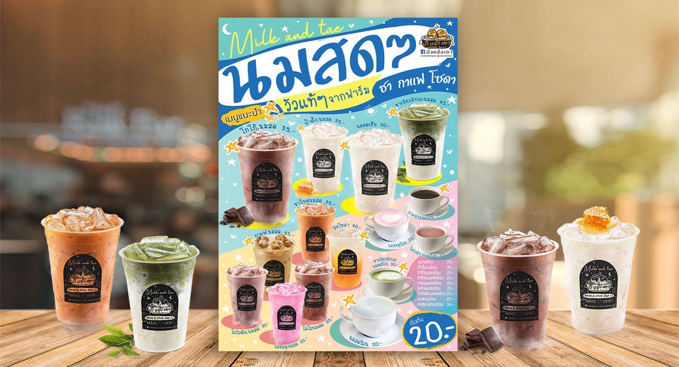 ออกแบบเมนูอาหาร ขนมหวาน/เครื่องดื่ม ตามสไตล์ ฉลากสินค้า Poster สื่อสิ่งพิมพ์