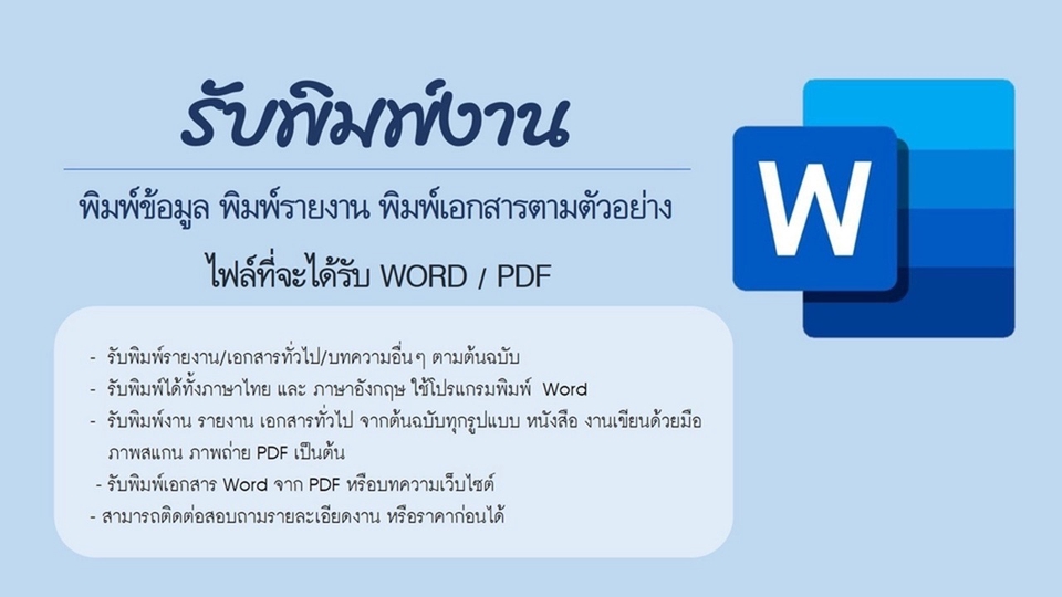 รับพิมพ์รายงาน เอกสารทุกอย่าง บทความตามต้นฉบับ Word