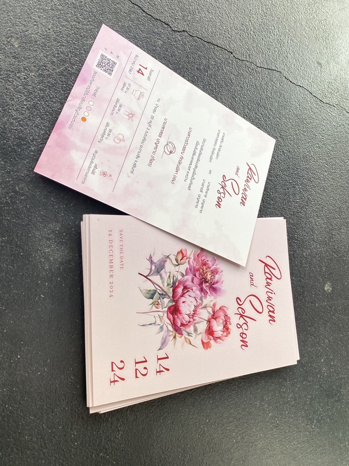 พิมพ์การ์ดขนาด 5*7 - ใช้กระดาษอาร์ตมัน 300 แกรม พิมพ์ 4 สี 1-2ด้าน -ลูกสามารถเเจ้งรายอะเอียดที่ต้องการได้เลยครับ (sparkling heart) - กระดาษอาร์ตมัน 300 เเกรม = ให้ภาพมีสีสันสดใส (เหมาะกับงานทุกรูปแบบ) - กระดาษ soomth 280 แกรม. = เหมือนกระดาษธรรมดา แต่มีความเรียบกว่าเเละหนากว่า รองรับหมึกได้ดี ภาพสวย กระดาษกล่มพิเศษ - กระดาษแคนวาส 280แกรม = เนื้อกระดาษเป็นลายผ้า สวย รองรับหมึกได้ดี (เหมาะกับงาน การ์ดเเละรูปภาพ) - กระดาษเปลือกไข่ 280แกรม = เนื้อเหมือนเปลือกไข่ สวย รองรับหมึกได้ดี (เหมาะกับงาน การ์ดเเละรูปภาพ) -พิมพ์ระบบดิจิตอลความระเอียดสูง -ระยะการผลิต ไม่เกิน 3,000 ใบ 1-2 วันทำการ 3,000 ขึ้นไป 3-5 วันทำการ -เริ่มนับตั้งแต่คอนเฟิร์มแบบพร้อมผลิตทันที ขั้นตอนการทำงาน 1. รับแบบจากลูกค้า หลังจากชำระ 2. ผลิตงาน 3. จัดส่ง