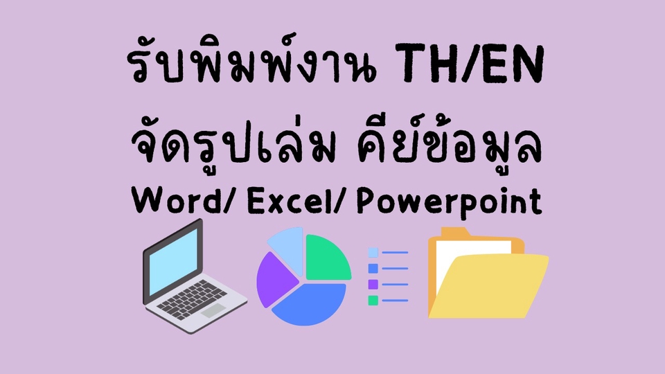 รับพิมพ์งาน/คีย์ข้อมูล/จัดรูปเล่ม Word, Excel ทั้ง EN/TH
