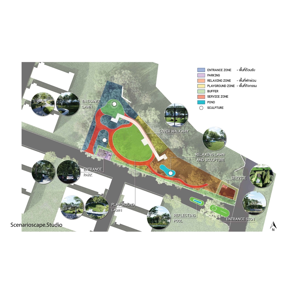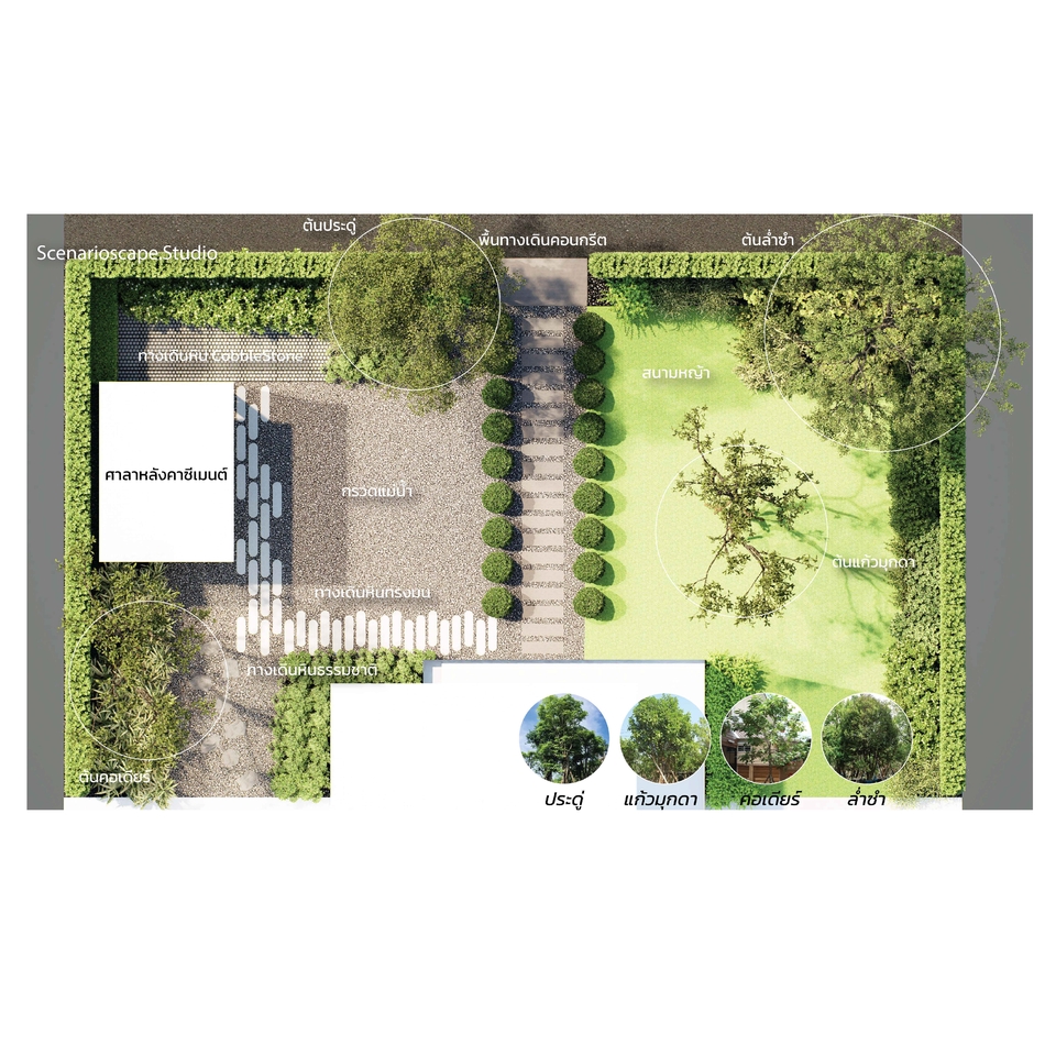 C : วางผัง / Concept / Perspective / Isometric / วัสดุและพืชพรรณ / แบบก่อสร้างภูมิสถาปัตยกรรม