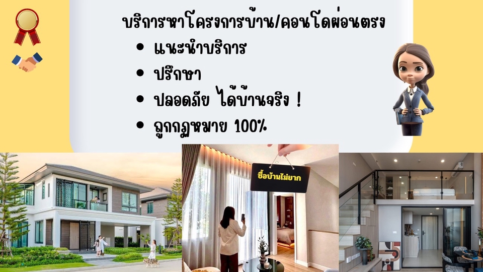 ฿500- ให้คำปรึกษาและแนะนำบริการการซื้อบ้าน/คอนโดผ่อนตรง -แนะนำโครงการบ้าน/คอนโด 5 โครงการทำเลที่ลูกค้าต้องการในงบลูกค้า -