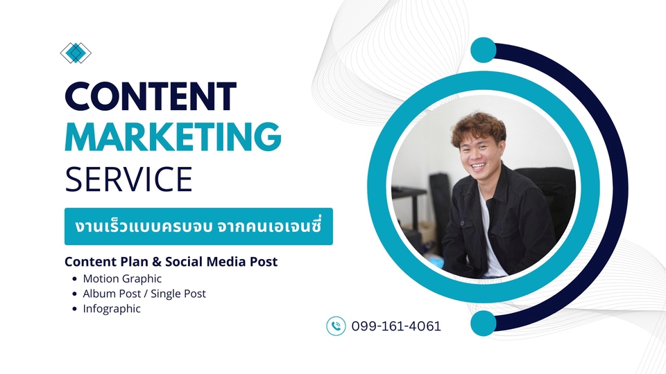 มีประสบการณ์ทำงาน Creative & Content Marketing กับ Digital Agency - คิด Topic ในแต่ละเดือนในสอดคล้องกับแบรนด์ หรือตามวัตถุประสงค์ของลูกค้า - ประเภทคอนเทนต์ Motion Graphic, Album Post / Single Post, Infographic - วางแผนการทำคอนเทนต์ในแต่ละเดือน 10-15 คอนเทนต์/เดือน หรือมากกว่านั้นตามข้อตกลง - พร้อมดูแลและวางแผนการลงคอนเทนต์ในแต่ละช่องทาง เช่น Facebook, Instagram และ Line Official Account - พร้อมทำงานร่วมกับทีมในองค์กร ฝ่ายการตลาดหรือทีมกราฟิก ขั้นตอนการทำงาน 1. ประชุมกับผู้ว่าจ้าง เพื่อรับรายละเอียดในการทำงาน ข้อมูล และวันเวลาที่ส่งงาน 2. ทีมเริ่มดำเนินการทำงาน 3. ทีมส่งงานให้ผู้ว่าจ้างตรวจ 4. หากมีการแก้ไข ทางทีมจะทำการปรับปรุงแก้ไขตามความต้องการของผู้ว่าจ้าง 5. ส่งงานฉบับที่เสร็จสมบูรณ์