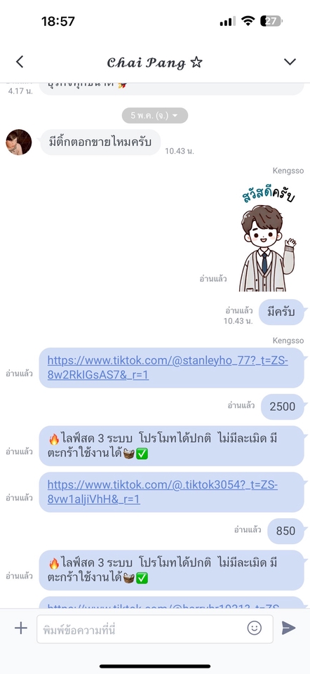 ฿13,000🔑 1. ข้อมูลล็อกอิน TikTok • จำนวนผู้ติดตาม: 20,000 – 35,000 คน • ชื่อบัญชี TikTok • รหัสผ่าน • อีเมล/เบอร์โทรที่ผูกบัญชี • หากมี 2FA จะส่งรหัสเปิดให้ด้วย • วิธีเปลี่ยนรหัสผ่านอย่างปลอดภัย ⸻ 🛒 2. ยืนยันว่าช่อง “ลงชื่อใช้ตะกร้านายหน้า” ได้ • สามารถใช้งาน Seller Center ได้ ⸻ 🎥 3. ยืนยันว่า “เปิดไลฟ์สด” ได้แล้ว • ช่องสามารถไลฟ์สดได้ทันที • แนะนำวิธีตั้งค่าพื้นฐานในการไลฟ์ ⸻ 📄 5. เอกสาร/บริการเสริม (หากต้องการ) • แนะนำการใช้งานช่อง TikTok สำหรับธุรกิจ • วิธีเพิ่มความปลอดภัยให้บัญชี