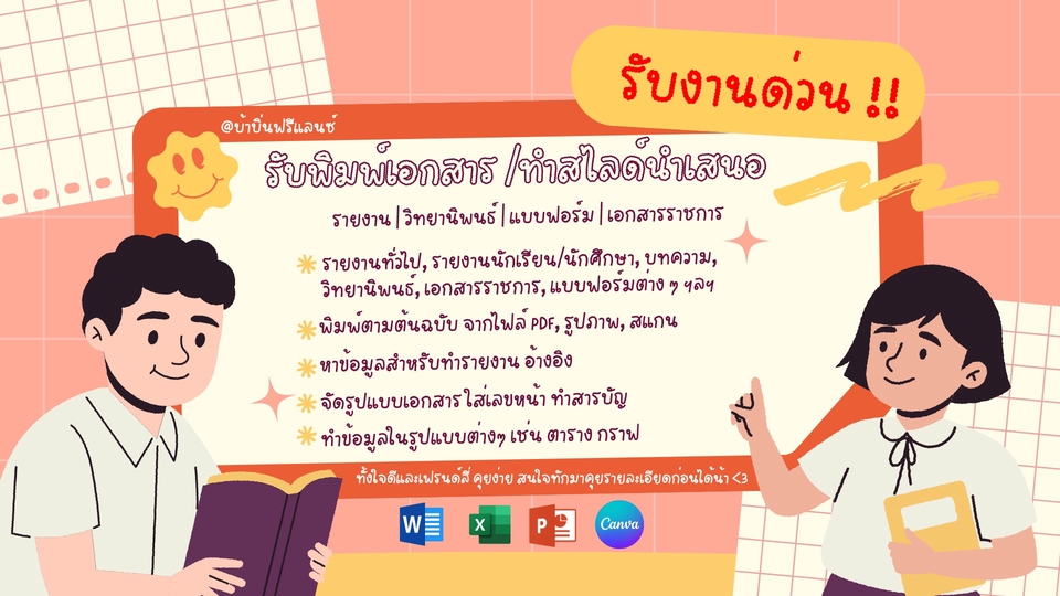 รับพิมพ์เอกสาร รายงาน หนังสือราชการ ออกแบบสไลด์นำเสนอ ฯลฯ (TH/ENG)