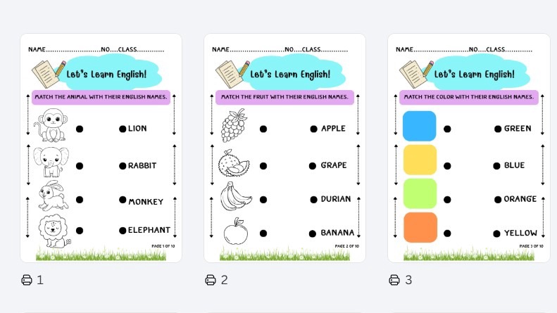 ฿300- ออกแบบใบงานภาษาอังกฤษ จับคู่คำและภาพ - ออกแบบใบงานเติมคำศัพท์ และอื่นๆตามที่ลูกค้าต้องการ - หรือหากต้องการเป็น File ตัวอย่างงานทางเรามีพร้อมส่งเลย สามารถปรับแก้ได้ 5 ครั้งตามต้องการ จำนวน 10 หน้า