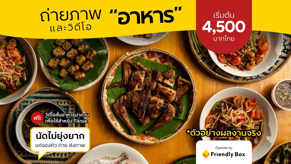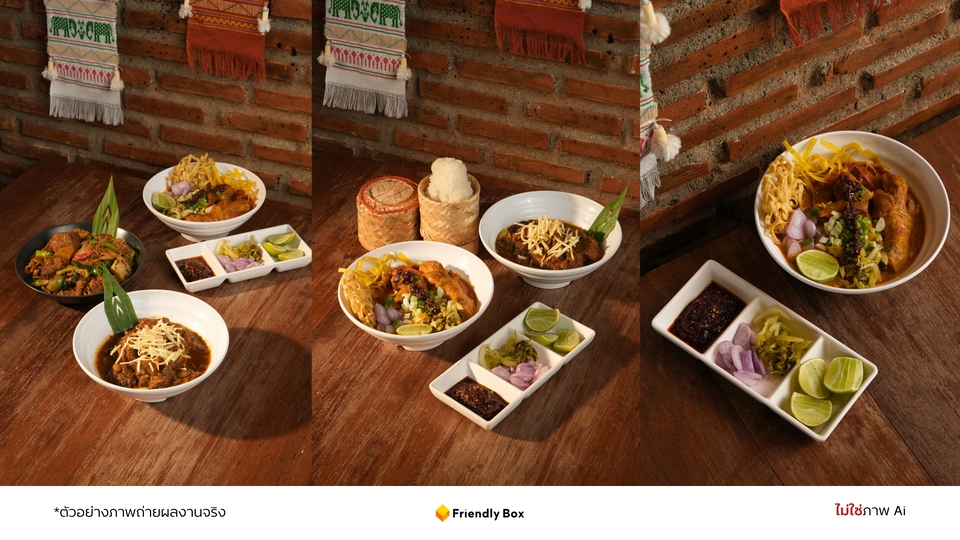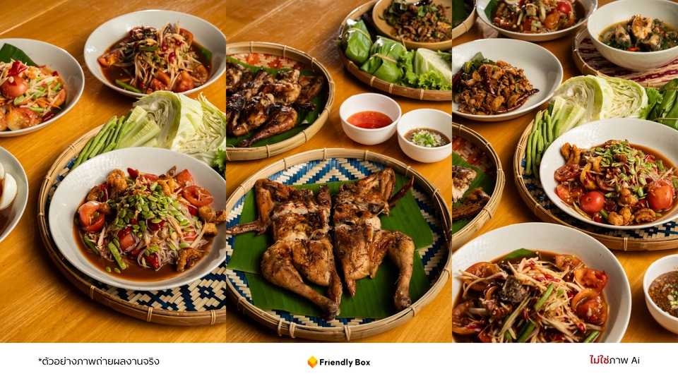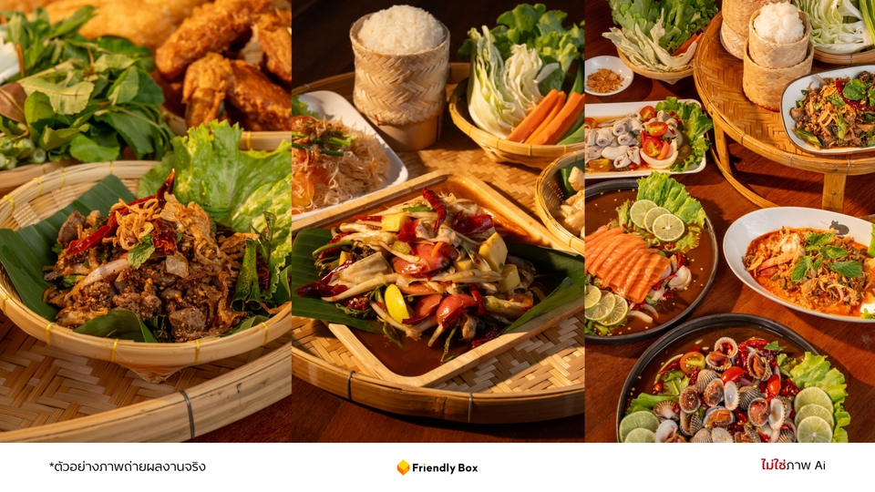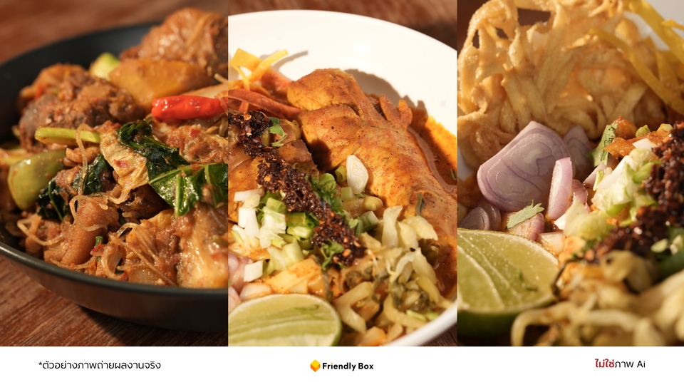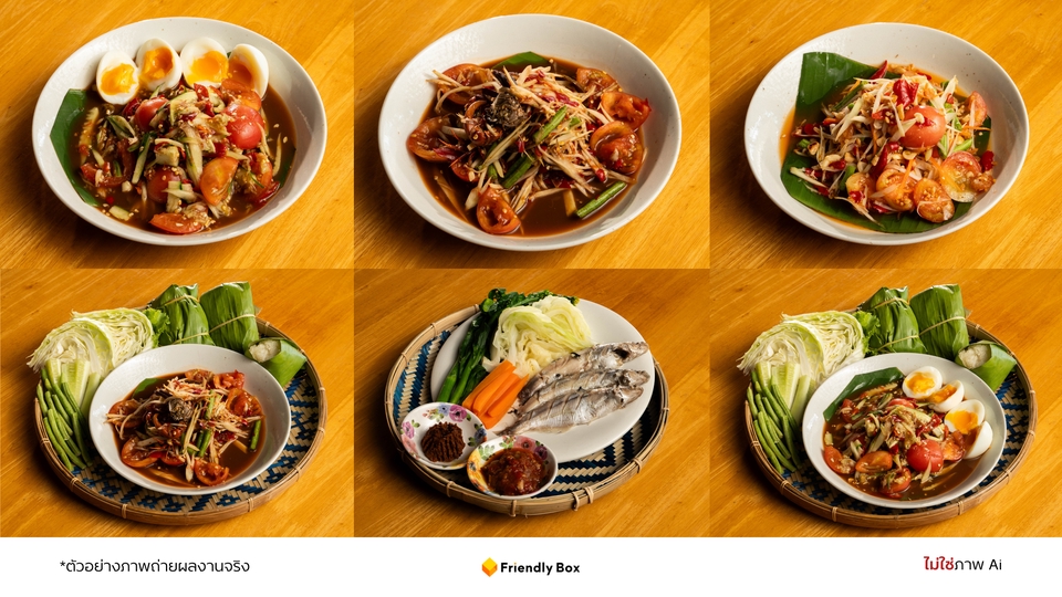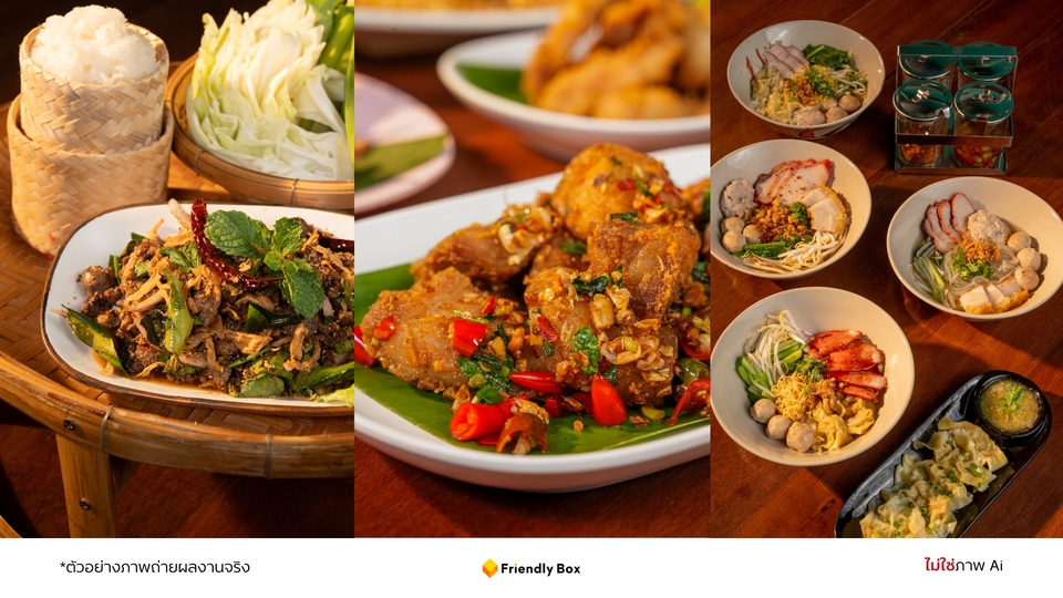 - • 🍽️ ถ่ายภาพอาหารบนโต๊ะร้าน 25 เมนู