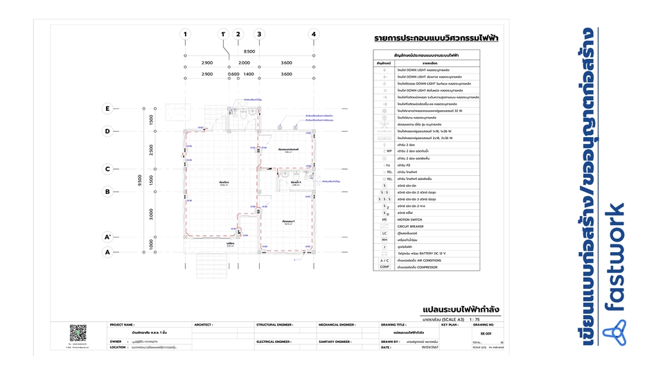 เราให้บริการรับเขียนแบบก่อสร้าง (Construction Drawing) ที่มีความละเอียด คำนวณโครงสร้าง (Structural Design) ด้วยความรู้ทางวิศวกรรมและทฤษฎีที่ทันสมัย และประมาณราคา (BOQ) ด้วยเครื่องมือที่มีความแม่นยำและตรวจสอบอย่างรอบคอบ ทั้งสำหรับอาคารประเภท บ้านพักอาศัย บ้านแฝด อาคารพานิชย์ ด้วยประสบการณ์การทำงานมากกว่า 3 ปี เรามั่นใจว่าจะสามารถตอบสนองความต้องการของคุณได้ ขั้นตอนการทำงาน 1. ผู้รับจ้างต้องการข้อมูลเบื้องต้นจากผู้ว่าจ้าง เช่น ความกว้าง, ความยาว, จำนวนชั้น, หรือประเภทอาคารที่ลูกค้าต้องการ (รวมถึงแบบร่างหรือรูปภาพประกอบที่ช่วยให้เข้าใจรายละเอียดของอาคาร) 2. สำเนาโฉนดที่ดิน เพื่อตรวจสอบระยะร่นให้ถูกต้องตามที่กฎหมายกำหนด 3. ตกลงเกี่ยวกับระยะเวลาการทำงานและจัดทำใบเสนอราคาเพื่อให้ผู้ว่าจ้างได้พิจารณา (ระยะเวลาดำเนินการจะนับจากวันที่ตกลงจ้างงาน) 4. ในระหว่างการดำเนินงาน ผู้รับจ้างจะรายงานความคืบหน้าของงานอย่างประจำและอาจจะต้องขอข้อมูลเพิ่มเติมจากนายจ้าง 5. นัดวันสำหรับการอธิบายรายละเอียดของงานแล้ว ส่งมอบงานผ่านระบบ Fastwork ให้กับผู้ว่าจ้าง