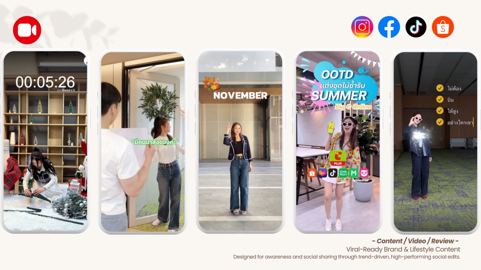 [Creative VDO Content] รับสร้างคลิป วิดีโอคอนเทนต์ รีวิวสินค้า ปักตระกร้า คลิปไลฟ์สไตล์ KOL-KOC