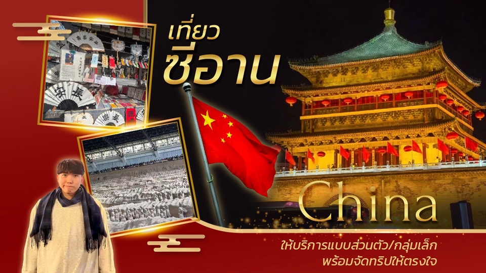 พาเที่ยวซีอานที่ให้บริการแบบส่วนตัว หรือแบบกลุ่มเล็ก ตรงกับความต้องการของคุณ เราพร้อมจัดทริปให้ตรงใจ ✨นำเที่ยว / แพลนเที่ยว 🚘รถรับ - ส่งสนามบิน / เหมารถเที่ยวในเมือง และต่างเมืองแบบ 1 day trip 📍 เวลางานไม่เกิน 8 ชั่วโมง ค่าล่วงเวลาชั่วโมงละ 440 บาท *ราคาที่เห็นบนหน้าเว็ปไซต์จะต้องชำระค่ามัดจำ 50% ก่อน และชำระส่วนที่เหลือหน้างานอีก 50%* สนใจติดต่อสอบถามได้นะครับ ขั้นตอนการทำงาน 1. คุยรายละเอียดของบริการ สถานที่ วัน และเวลา กับลูกค้า 2. ร้านค้าสร้างใบเสนอราคา 3. ลูกค้าชำระเงินตามที่ตกลง 4. รอใช้บริการตามวันเวลาที่นัดหมาย 5. หลังเสร็จสิ้น กดอนมุัติงานเป็นอันเรียบร้อย