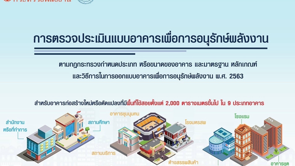 ปริญญาตรี วคณะวิศวกรรมศาสตร์ มหาวิทยาลัยเกษตรศาสตร์ รับตรวจประเมินในการออกแบบก่อสร้างหรือดัดแปลงอาคารเพื่ออนุรักษ์พลังงาน ตามกฎกระทรวงกำหนดประเภท หรือขนาดของอาคาร และมาตรฐาน หลักเกณฑ์ และวิธีการในการออกแบบอาคารเพื่ออนุรักษ์พลังงาน พ.ศ.2563 โดยผู้ตรวจที่ได้รับการรับรองจากกรมพัฒนาพลังงานทดแทนและอนุรักษ์พลังงาน กระทรวงพลังงาน สิ่งที่ตรวจสอบและประเมิน เช่น - OTTV. & RTTV (วัสดุทึบแสงและโปร่งแสง) - ระบบไฟฟ้าแสงสว่าง - ระบบปรับอากาศ - อุปกรณ์ผลิตน้ำร้อน - พลังงานหมุนเวียน เป็นต้น ขั้นตอนการทำงาน 1. ตรวจประเมินแบบจากผู้ว่าจ้าง ตามหลักการตรวจประเมินอาคารอนุรักษ์พลังงาน และหากผลตรวจประเมินไม่ผ่านเกณฑ์จะให้คำแนะนำกับผู้ว่าจ้างเพื่อนำไปปรับแก้แบบ 2. ตรวจประเมินแบบหลักจากปรับแก้อีกครั้ง พร้อมส่งเอกสารการประเมินพร้อมเซ็นต์รับรองส่งให้ทางผู้ว่าจ้าง 3. ส่งเอกสารตัวจริงที่ผ่านการเซ็นต์รับรองทางไปรษณีย์ให้ผู้ว่าจ้าง