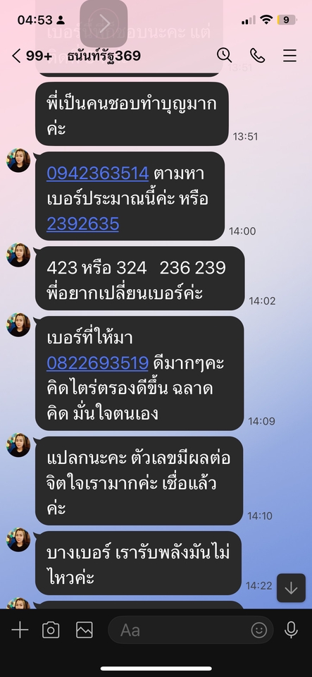 ฿2,499วิเคราะห์ผลหรือทำนายดวงจากเบอร์มือถือที่ใช้อยู่ในปัจจุบันส่งผลอย่างไร แนะนำและ จัดหาเบอร์มงคลที่เหมาะสมร้อยเรียงตำแหน่งเหมาะสม วิเคราะห์เลขที่บ้านและทะเบียนรถ แนะนำวิธีแก้เคล็ดกรณีเลขที่บ้านและเลขทะเบียนรถไม่มงคล