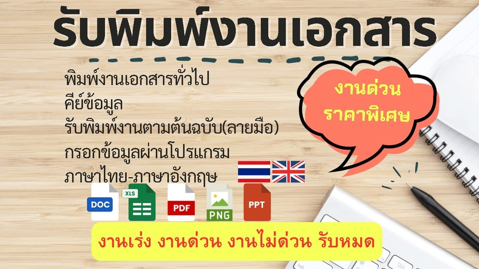 รับพิมพ์เอกสาร/คีย์ข้อมูลทุกประเภท (รับงานด่วน)