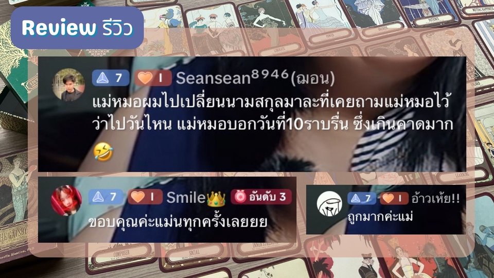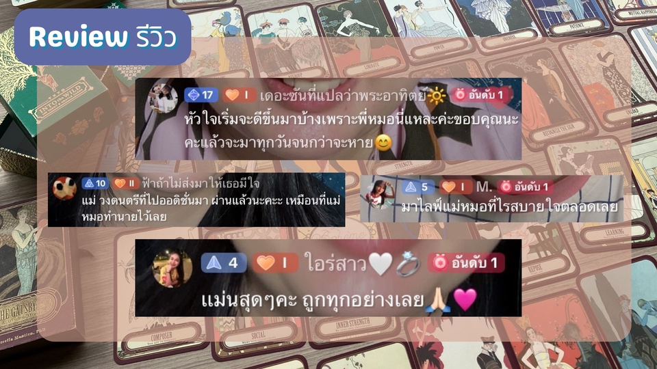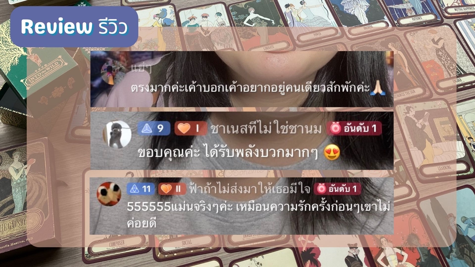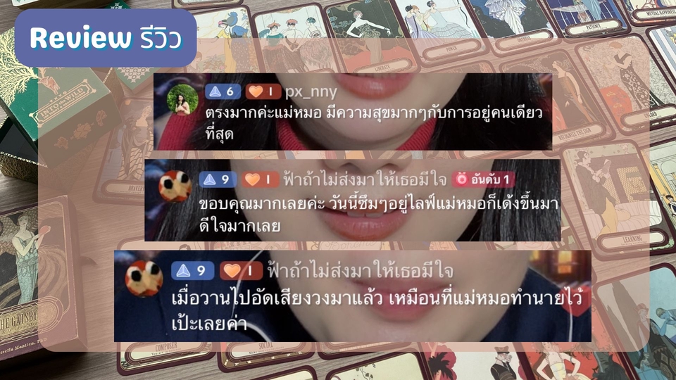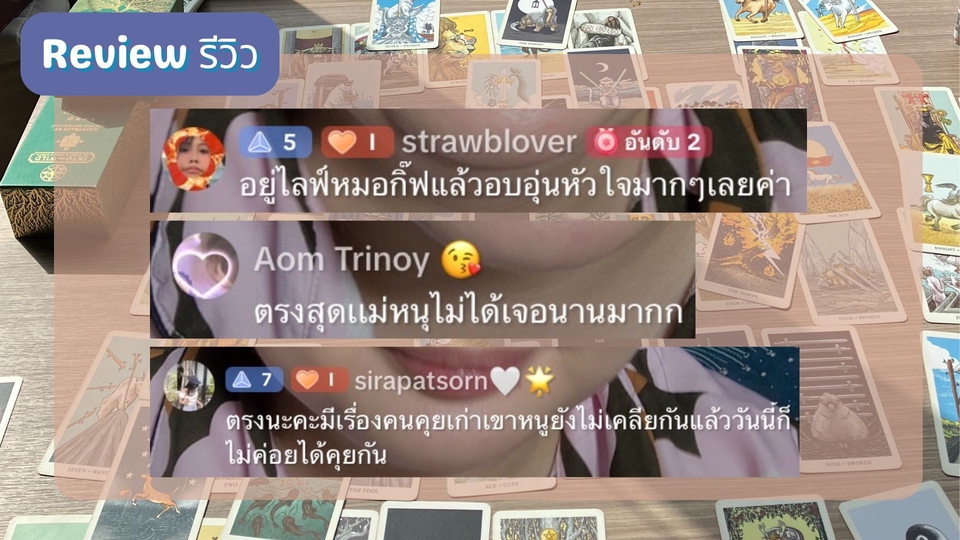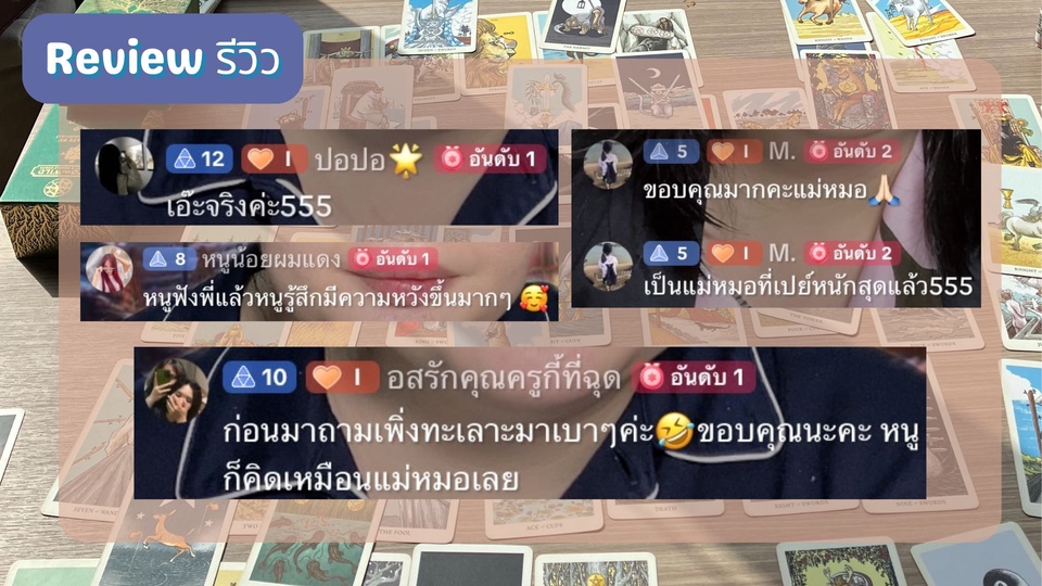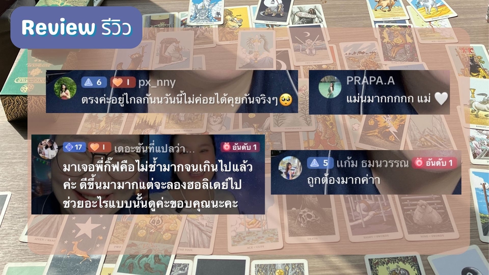 ฿555ดูดวงแบบไม่ต้องถามคำถามด้วยไพ่ออราเคิล ซึ่งเป็นไพ่แนวให้กำลังใจเพื่อใช้ชีวิตต่อได้ จำนวน 30 นาที