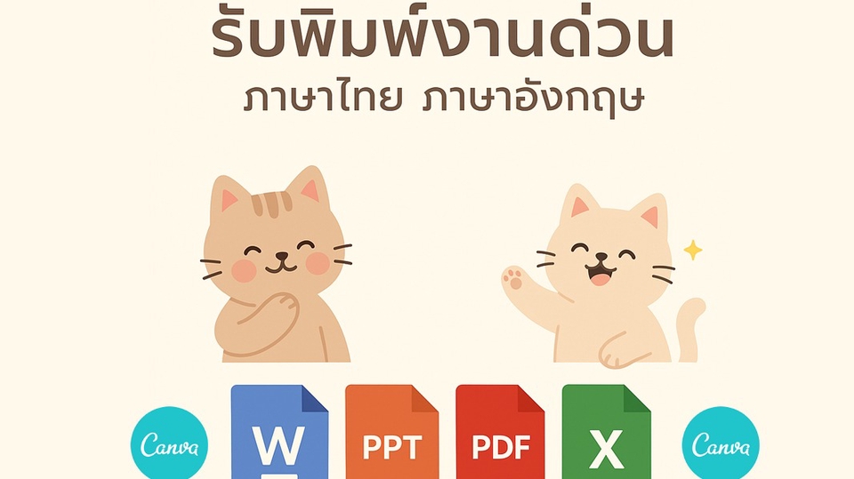รับพิมพ์งานด่วน (ไทย,อังกฤษ) รับคีย์ข้อมูลงานด่วน ขั้นตอนการทำงาน - ลูกค้ากำหนด ฟอนต์,ขนาด และขอบกระดาษ ตามต้องการ - ลูกค้าสามารถเลือกไฟล์ที่ต้องการให้ส่งได้ Word , PDF , Excel หรือรูปภาพ - สามารถแก้ไขได้ 2 ครั้ง - ส่งไฟล์ผ่านทาง E-Mail ขั้นตอนการทำงาน 1. ลูกค้าส่งไฟล์งานที่ต้องการมาใน Email หรือทางแชท 2. ทำงานตามบรีฟของลูกค้าส่ง เมื่อเสร็จงานจะส่งให้ทาง Email 3. ครั้งจากส่งหรือระหว่างงานลูกค้าสามารถให้แก้ได้ 2 ครั้ง