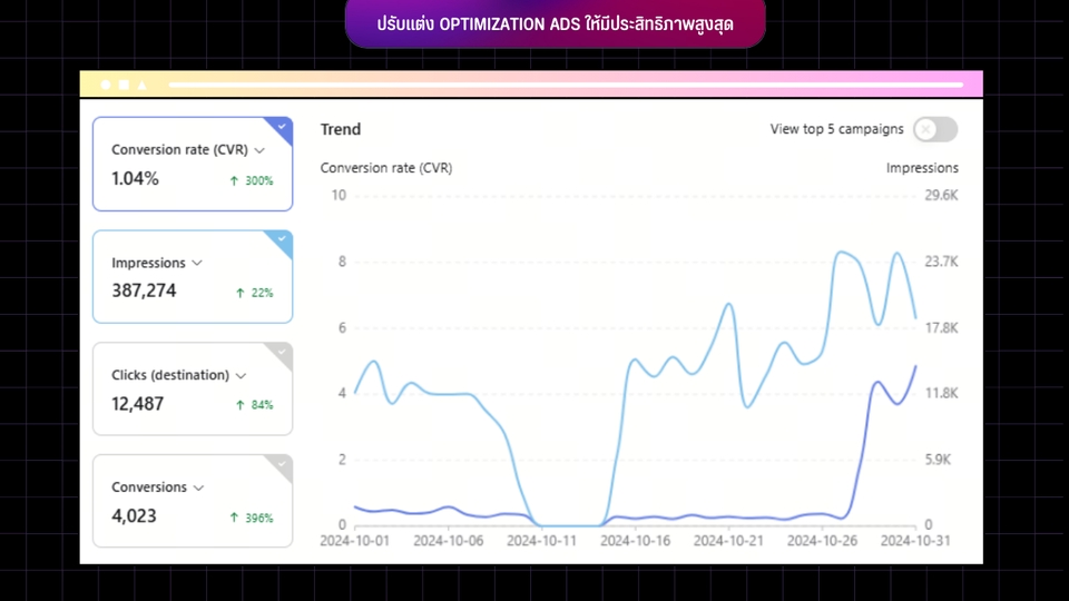 ฿2,500- ให้คำปรึกษา และ กำหนดกลุ่มเป้าหมายในการโฆษณาใน Tiktok เพื่อเพิ่ม Brand Awareness ให้ลูกค้าหลายๆกลุ่มรับรู้เป็นวงกว้าง , เพื่อเพิ่มยอดคำสั่งซื้อ - วิเคราะห์ และ วัดผล ส่งเป็น Report ในรูปแบบ PDF - สามารถกำหนดงบประมาณของโฆษณาได้ (ขั้นต่ำ 300 บาท ต่อวัน) - ค่าบริการจะถูกคิดแยกต่างหาก ไม่ได้นับรวมกับงบประมาณโฆษณา - ปรับแต่ง Optimization ให้ตัว Ads มีประสิทธิภาพมากที่สุด - ดูแล Monitor Ads - ตรวจสอบ คอนเทนต์ หรือ คลิปวิดีโอที่ใช้
