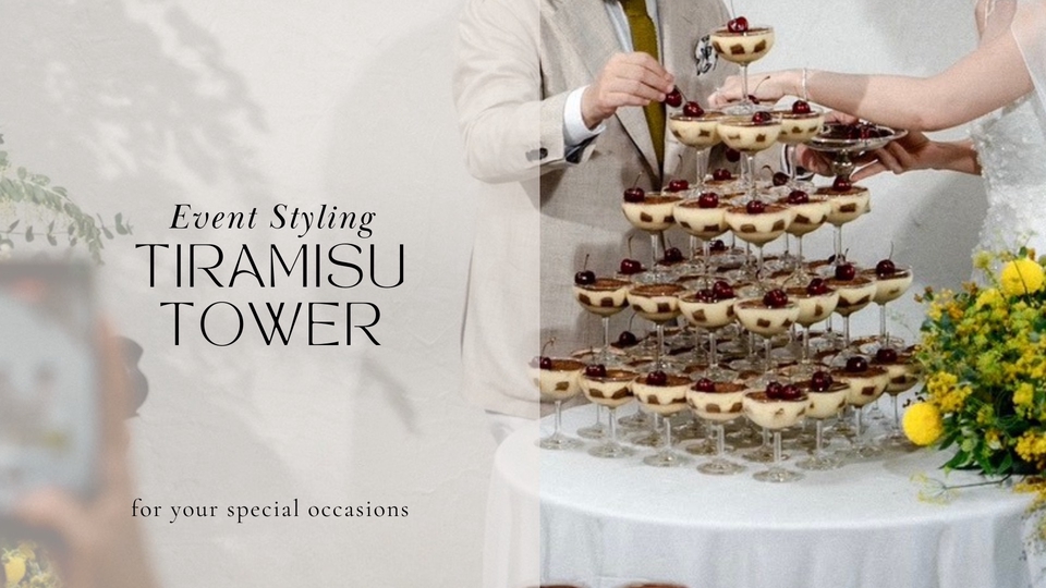 รับจัด Tiramisu Tower สำหรับงานแต่ง งานวันเกิด งานเลี้ยงต่างๆ