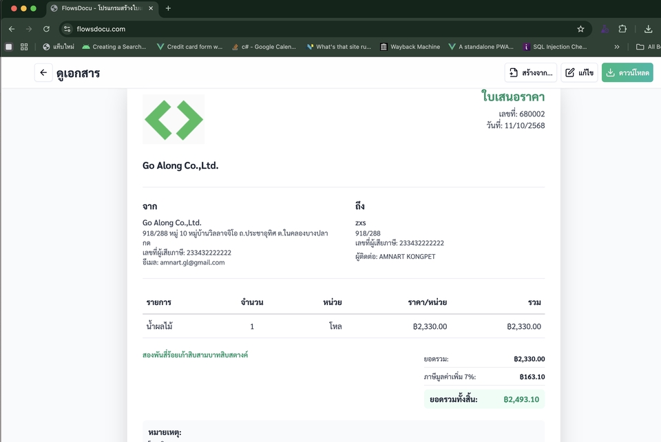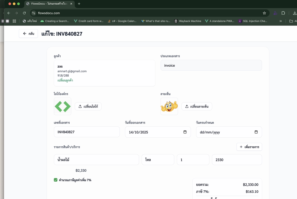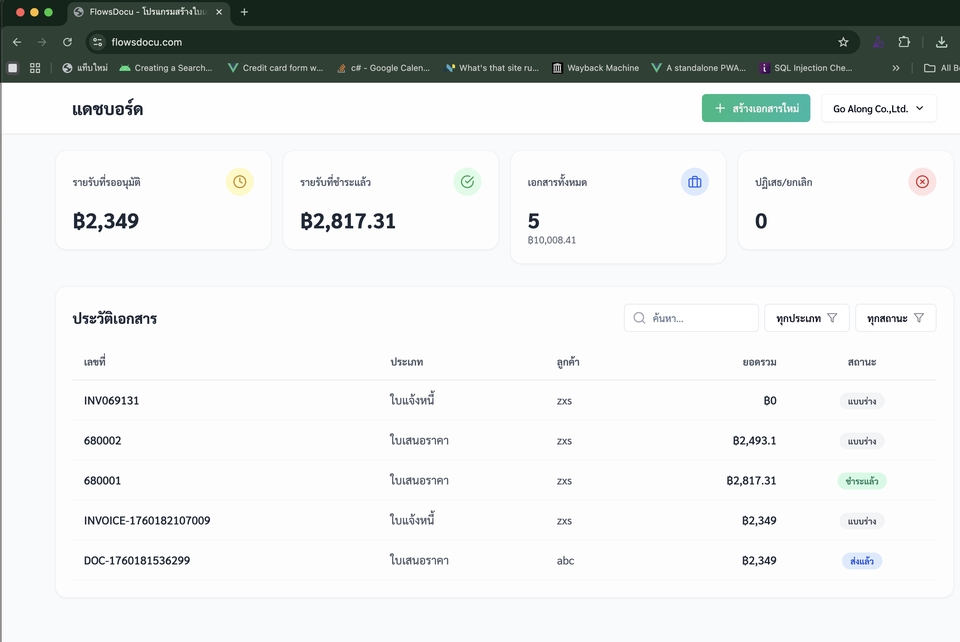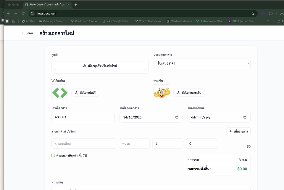 จัดการเอกสารง่าย ครบ จบ ในที่เดียว! ✅ ทำงานง่าย ทุกอย่างรวมอยู่ที่เดียว ✅ เป็นส่วนตัว สร้างระบบเฉพาะสำหรับบริษัทคุณ ✅ ปรับแต่งได้ ตาม Workflow ที่ต้องการ ✅ ฟรี! สร้างใบเสนอราคา ใบแจ้งหนี้ ใบวางบิล ใบรับชำระ และเอกสารอื่น ๆ บนระบบคลาวด์ได้ทันที พร้อมใช้งานวันนี้! ยกระดับงานเอกสารของคุณให้ง่ายขึ้น ฟรี ต้องการปรับแต่งให้เป็นเฉพาะของทีมงานคุณแจ้งเราได้ https://flowsdocu.com/