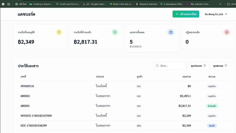 ฿1,500ฟรี! สร้างใบเสนอราคา ใบแจ้งหนี้ ใบวางบิล ใบรับชำระ และเอกสารอื่น ๆ บนระบบคลาวด์ได้ทันที