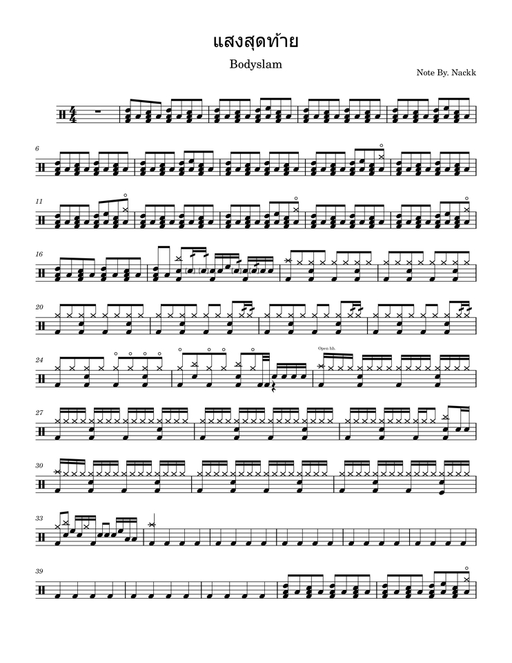 รับเขียนโน้ตกลองชุด อ่านง่าย ราคาถูก ส่งงานไว ตรงเวลา เขียนโครงสร้างหลัก (Groove) และฟิลสั้นๆ ให้เล่นตามได้ง่าย เหมาะสำหรับมือใหม่หรือวงดนตรีที่ต้องการแค่โครงสร้างเพลง รับเรียบเรียงโน้ตจากลายมือ หรือไฟล์ MIDI ให้กลายเป็นแผ่นโน้ตมาตรฐานที่สวยงาม ราคาและระยะเวลา ขึ้นอยู่กับความยาวและความยากของเพลงนั้นๆ