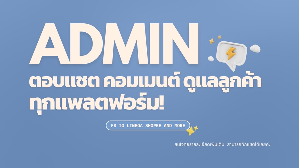 - • ดูแลการตอบแชตและตอบคอมเมนต์ลูกค้า ตามช่วงเวลาที่ตกลง