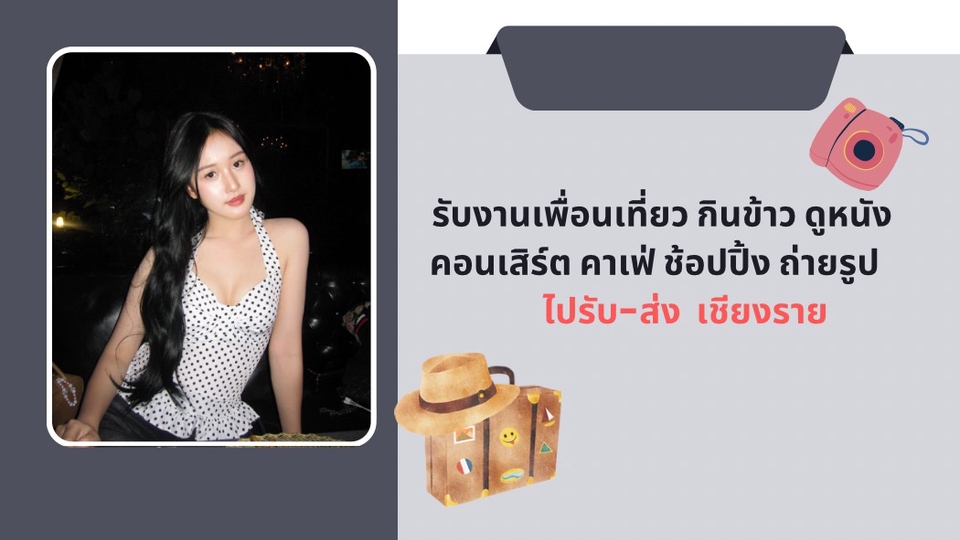 รับงานเพื่อนเที่ยว / กินข้าว / ไปคาเฟ่ / ดูหนัง❗️ การจ้างงาน ต้องทักมาก่อนล่วงหน้าอย่างน้อย1วัน⚠️ ให้บริการเป็นเพื่อนทำกิจกรรมทั่วไป เช่น 🍽️ กินข้าว / ทานอาหาร ☕ ไปคาเฟ่ 🎬 ดูหนัง 🛍 เดินห้าง / ถ่ายรูป 💬 นั่งคุย เป็นเพื่อนแก้เหงา ➕ หรือกิจกรรมอื่น ๆ สามารถสอบถามเพิ่มเติมได้ ⏰ อัตราค่าบริการ • ชั่วโมงละ 300 บาท • แพ็กเกจ 5 ชั่วโมง 1,000 บาท 🚗 ค่าเดินทาง • หากสถานที่ ไม่ไกลเกินไป สามารถ ไม่คิดค่าเดินทาง ได้ • กรณีระยะทางไกล ขอให้ลูกค้าดูแลค่าเดินทาง หรือคิดเพิ่มตามระยะ (ประมาณ 200–300 บาท) 💰 ค่าใช้จ่ายระหว่างทำกิจกรรม • ค่าอาหาร เครื่องดื่ม ค่าตั๋ว หรือค่าใช้จ่ายอื่น ๆ ระหว่างเที่ยว 👉 ขอให้ลูกค้าดูแลให้ 📍 นัดเจอในที่สาธารณะเท่านั้น ❌ ไม่รับงานนอกขอบเขต / ไม่เกี่ยวกับเรื่องเพศ 📩 สนใจสอบถามรายละเอียดเพิ่มเติม ทักแชทได้เลยค่ะ 😊