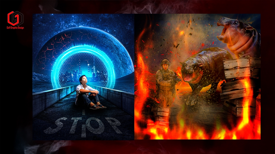 Photoshop รีทัช ภาพจินตนาการ ไซไฟ ปกหนัง Gg Design รับออกแบบ งานฟรีแลนซ์ กรอบรูป กราฟิกงานทุกชนิด