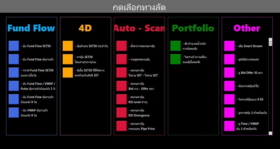 ฿5,400- โปรแกรมคำสั่งซื้อขายอัตโนมัติ - สามารถส่งคำสั่งซื้อขายอัตโนมัติได้ โดยกำหนดเงื่อนไข ผสมผสานได้ทั้งแบบ - Financial Ratio + Technical Indicator + CandleStick Pattern - รองรับการทำงานแบบ Muti Model Management - มีระบบ Risk Management - มีระบบ Portfolio Rebalancing - สามารถทำ BackTesting + ForwardTesting - สามารถ Upload Robot ขึ้น VPS ใน 2 คลิ๊ก ! - สามารถ แจ้งเตือน สัญญาณซื้อขายของ Robot ไปยัง มือถือ และ กรุ๊ป Line (line)