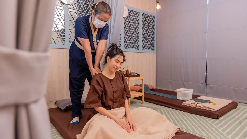 นวดไทย เป็นการนวดในลักษณะการกด คลึง ดึง ดัดตัว เป็นการนวดที่เหมาะสำหรับผู้ที่มีการอาการเมื่อยล้าหรือมีความเครียดสะสม สามารถช่วยผ่อนคลายความตึงตัวของกล้ามเนื้อ และเพิ่มอัตราการไหลของเลือดในร่างกายให้ดียิ่งขึ้น ซึ่งจะช่วยให้ได้รับความผ่อนคลายได้เป็นอย่างดี