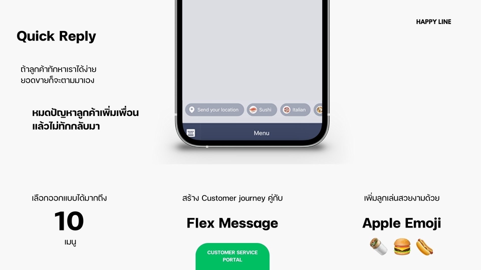 ฿6001. ออกแบบ Quick Reply ให้เหมาะกับธุรกิจของลูกค้า 2. ติดตั้ง Line Quick Reply สูงสุด 10 ปุ่ม